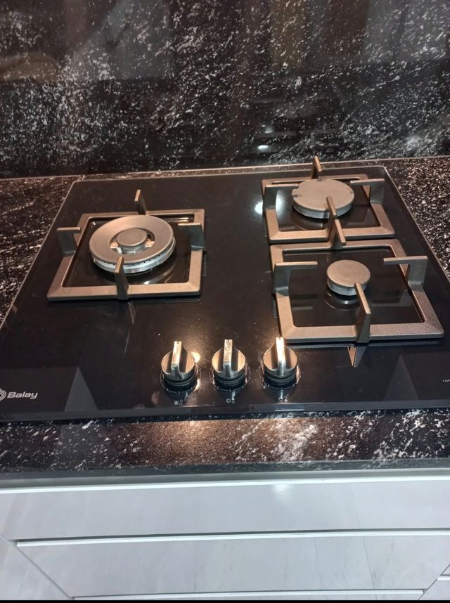 Detalles del productoCocina de gas Balay en perfecto estado. Es una placa de 3 quemadores de gas. Tiene un diseño elegante y moderno.