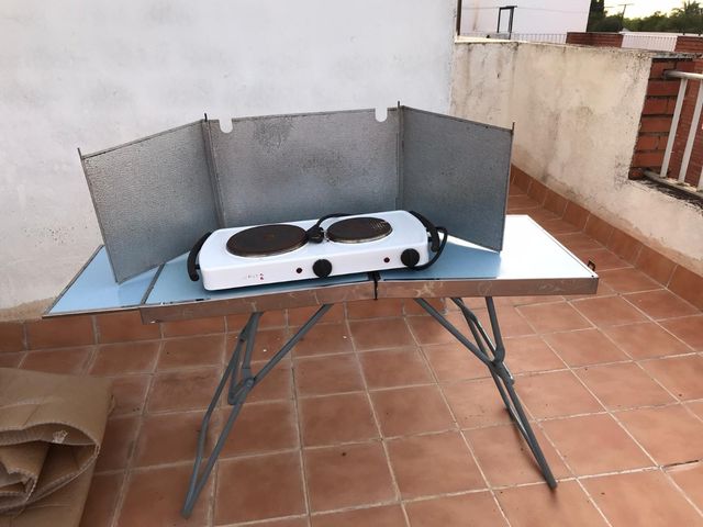 Detalles del productococina camping eléctrica dos fuegos funcionan bien los dos,en buen estado y pantalla salpicaduras. Medidas del producto