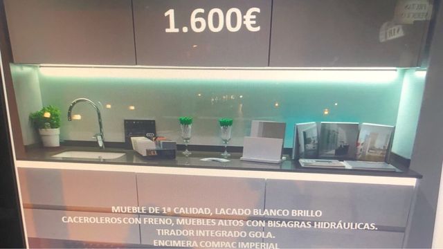 Detalles del producto3 Modulos colgados inferiores con dos cajones y posibilidad de añadir otro modulo o patas al suelo. 3Modulos superiores con puerta hidraulica hacia arriba y balda. Tres modulos de 80 total 240cm. Bancada compac marron con zocalo y fregadero de resina marca poalgi. Grifo no. Medidas del producto