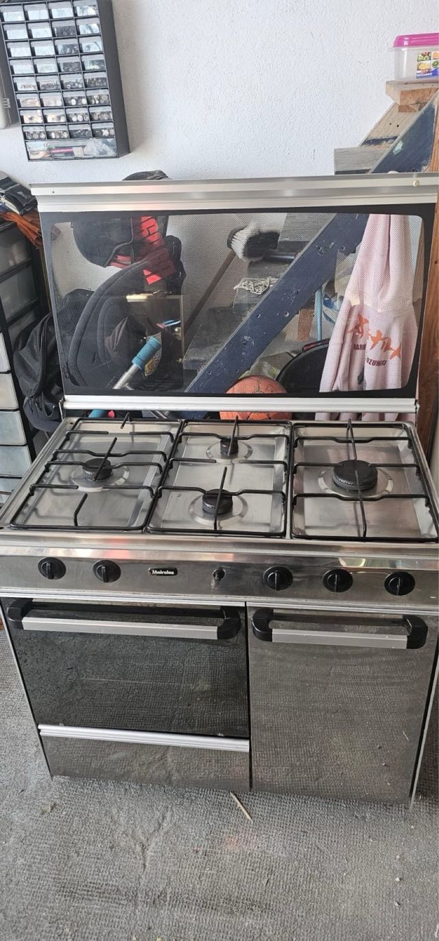 Detalles del productoCocina de gas con encimera de acero inoxidable y cristal.