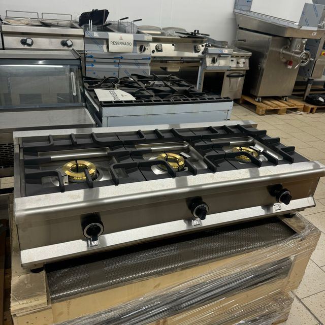 Detalles del productoCocina industrial de gas con tres quemadores.