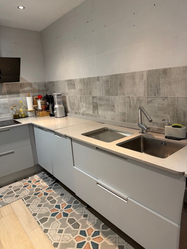 - Muebles de cocina en color gris.
