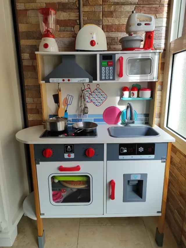 - Incluye accesorios como ollas, sartenes y utensilios.