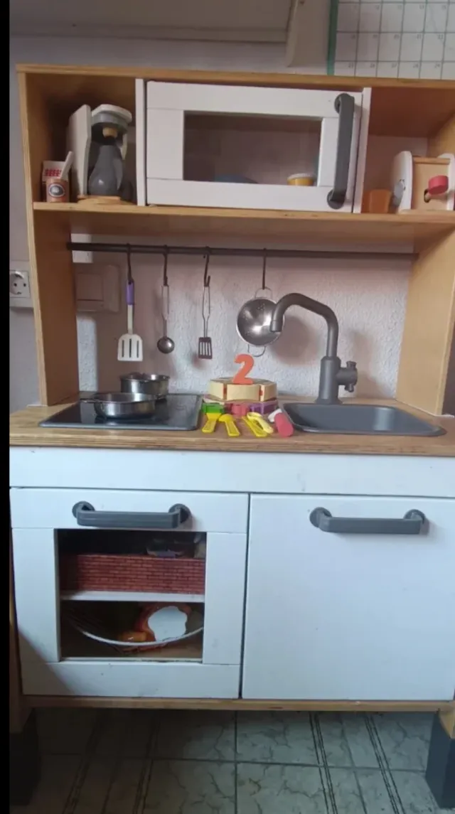 Cocinita de juguete de madera de madera. - Incluye muchos accesorios comprados aparte como se ven en las fotos. A recoger en Málaga capital.