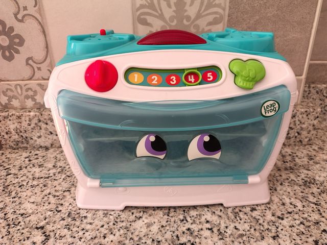 Se dona cocinita de juguete LeapFrog. Es de color blanco y turquesa, con detalles en rojo y verde. Va con pilas y tiene canciones. Si vienes a por ella la regalo.