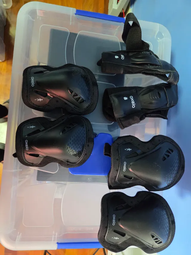 Detalles del productoSet de protecciones Oxelo para patinaje o ciclismo.
