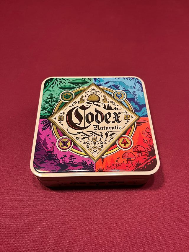 Detalles del productoCaja metálica con diseño Codex Naturalis. Presenta un diseño colorido y detallado dividido en cuatro secciones.