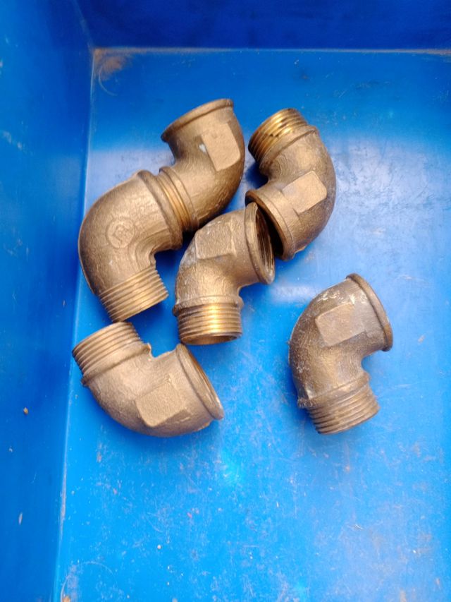 Se venden codos de latón de una pulgada 15 unidades aproximadamente Pedido mínimo 5 un. Precio 2€/un - Material: Latón - Medida: 1 pulgada