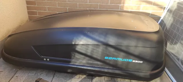Cofre de techo para coche, modelo Bermude 3300. - Color negro. - Diseño aerodinámico. - Capacidad de 3300 litros. Usado tres veces esta como nuevo