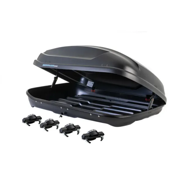 Cofre de techo para coche en color negro. - Diseño aerodinámico. - Apertura superior. - Material resistente.