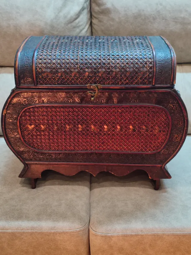 Cofre de madera y bambú decorado