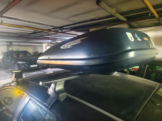 Cofre de techo para transportar equipaje. Medidas 140 de largo x 100 de ancho y 35 de altura por la parte más alta - Diseño aerodinámico. - Color negro.