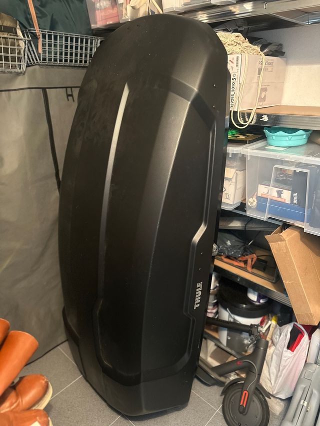 Cofre de techo Thule de color negro, ideal para transportar equipaje adicional. - Diseño aerodinámico. - Acabado mate.