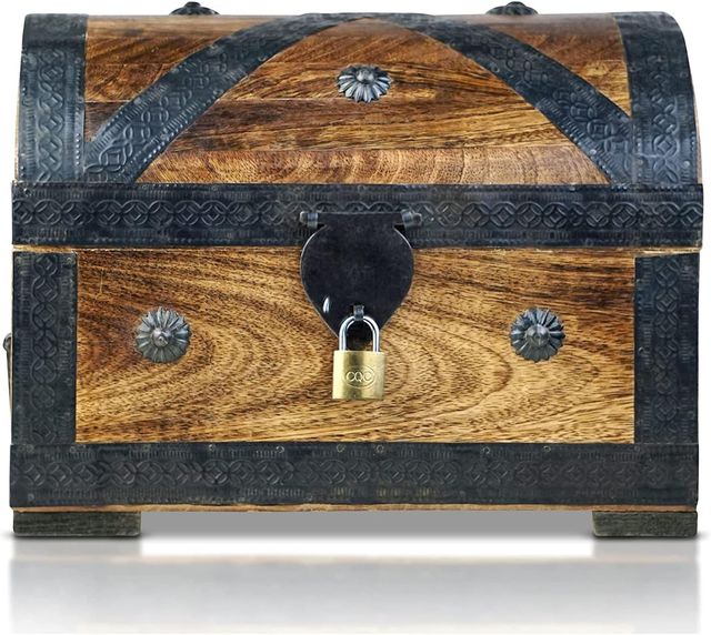 Cofre del Tesoro de Madera Hecho a Mano.28x20x20cm