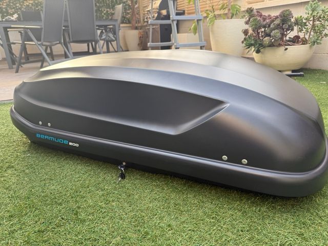 Detalles del productoCofre de techo Norauto Bermude 200 (375 litros) en buen estado con visibles signos de uso. Cerradura nueva recién cambiada.