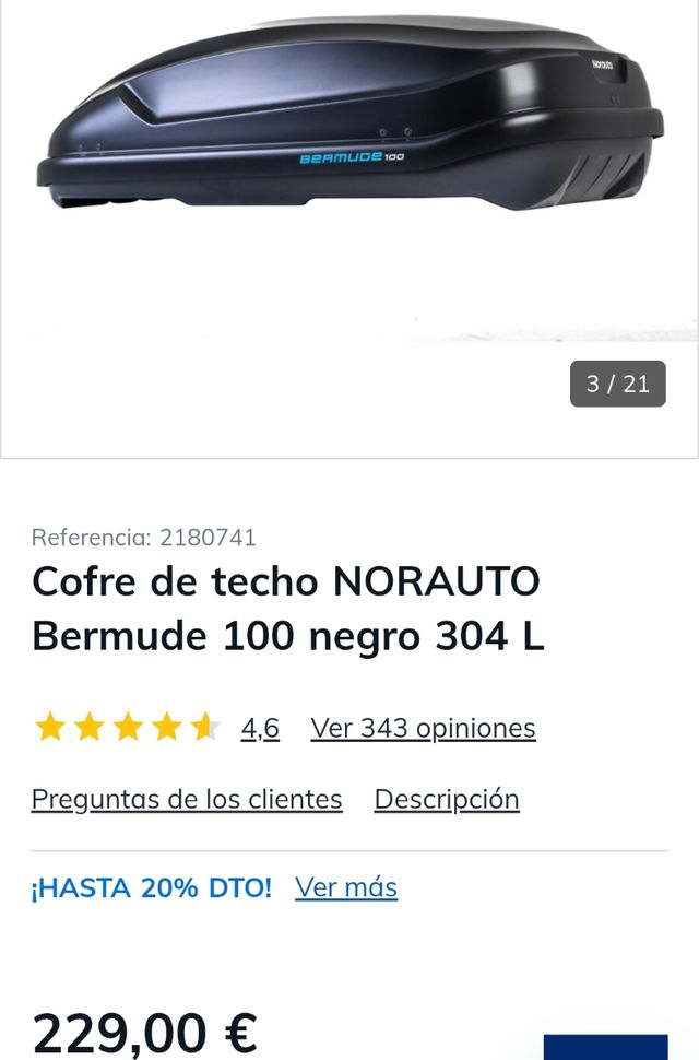 Detalles del productoCofre de techo Norauto Bermude 100 de color negro, con capacidad de 304 litros. Está en excelentes condiciones.