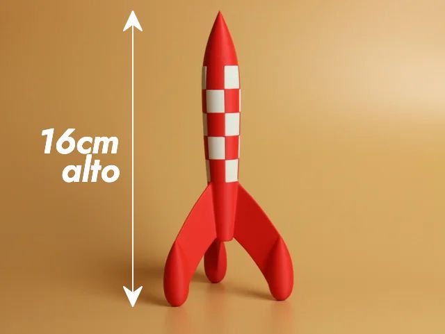 Figura del cohete de Tintín, con un diseño clásico en rojo y blanco. - Altura de 16cm. - Diseño a cuadros.