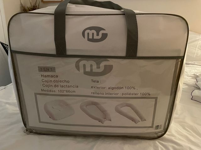 Detalles del producto3 en 1, el cojín lactancia se une mediante cremallera al colchoncillo y crea un cojín de colecho muy cómodo para el bebé. Además también se puede poner en forma de hamaca con la funda que incluye. Todo en perfecto estado. En la primera imagen viene una imagen de como son las 3 opciones
