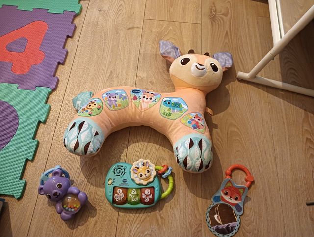 Detalles del productoCervatilla prácticamente nueva + accesorios. Ideal para bebés que empiezan a levantar el cuello estando boca abajo. Viene con accesorios y tiene música. La cervatilla tiene partes del cuerpo sensoriales que fomentan el desarrollo del bebé.