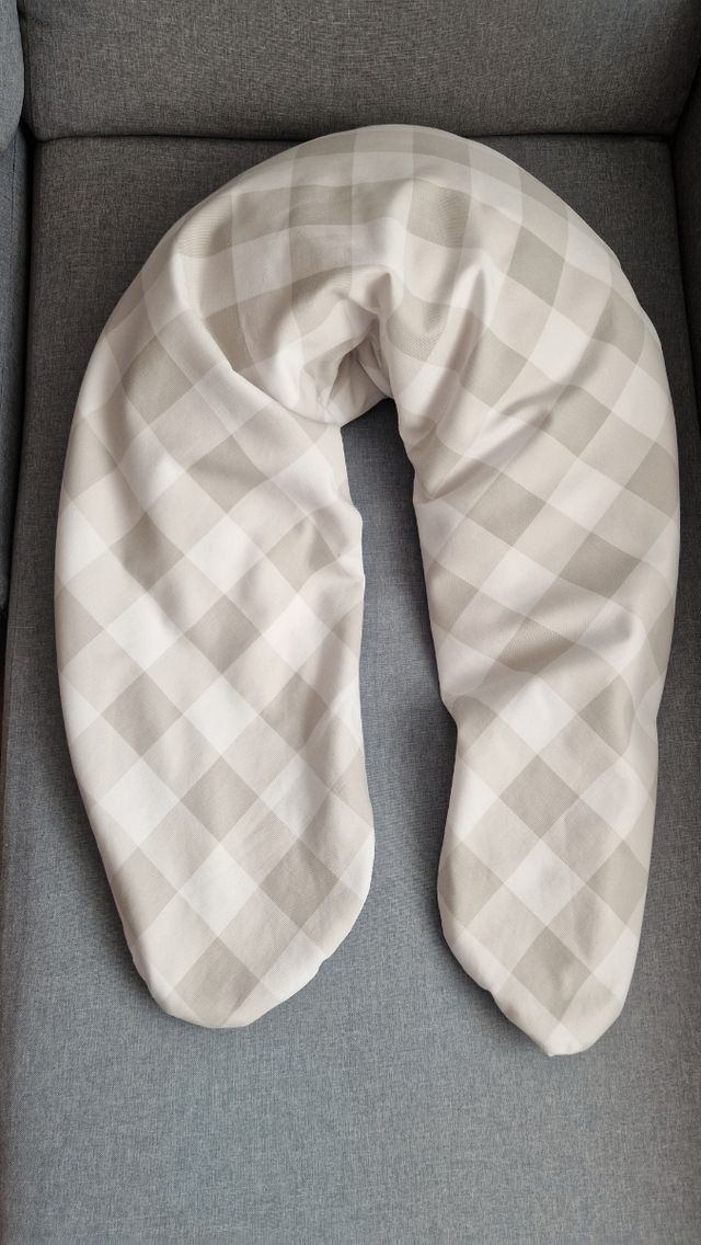 Detalles del productoCojín con forma semicircular de la marca Cambrass para embarazadas y posterior lactancia, con estampado de cuadros.