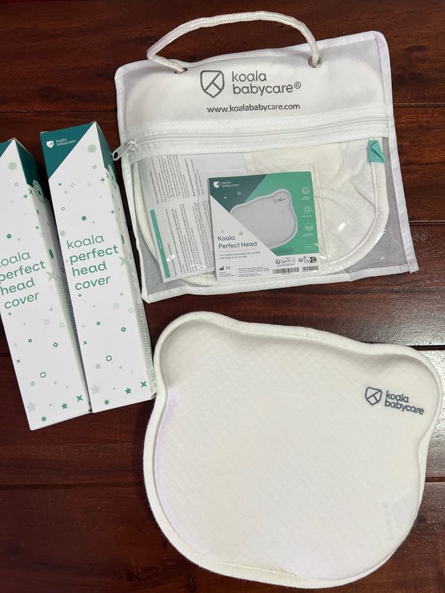 Cojín de la marca Koala BabyCare diseñado para la cabeza del bebé. Incluye Tres fundas. - Cojín ergonómico. - Tres fundas de tela. - Diseño con forma de oso.