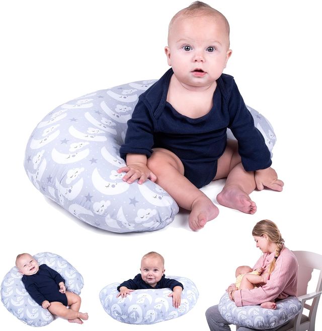 Detalles del productoPreciosa almohada de lactancia para bebés, con estampado de lunas y estrellas. Ideal para amamantar y apoyar al bebé, con funda lavable. Está nueva, precintada.