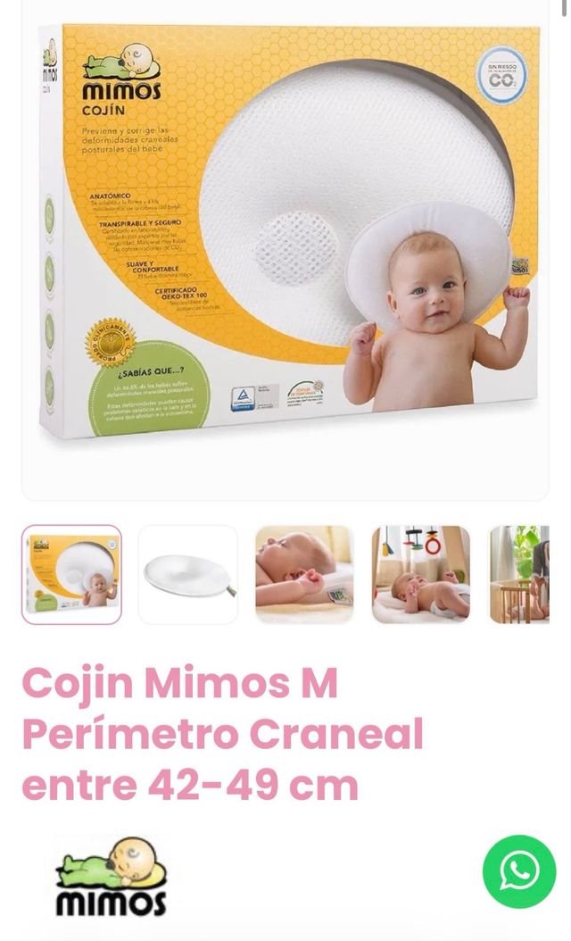 Detalles del productoCojín Mimos talla M, diseñado para prevenir y corregir deformidades craneales posturales en bebés. Está sin usar.