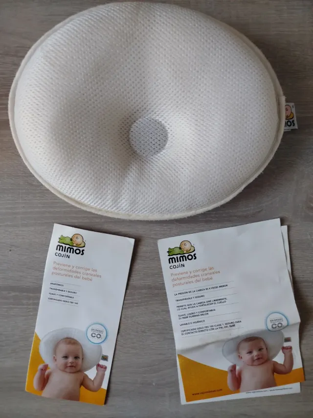 Detalles del productoCojín Mimos diseñado para prevenir y corregir deformidades craneales posturales en bebés. Su tejido es transpirable y seguro.