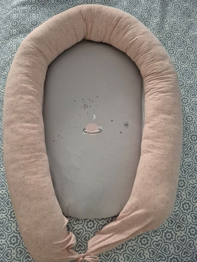 Detalles del productoPrecioso cojín nido para bebé, ideal para los primeros meses. Es de color rosa empolvado con estampado de puntitos blancos, y tiene un diseño muy dulce.