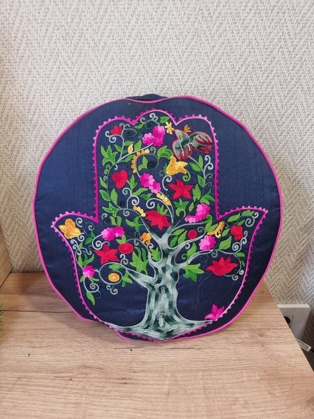 Cojín redondo Mano de Fátima – hecho en la India