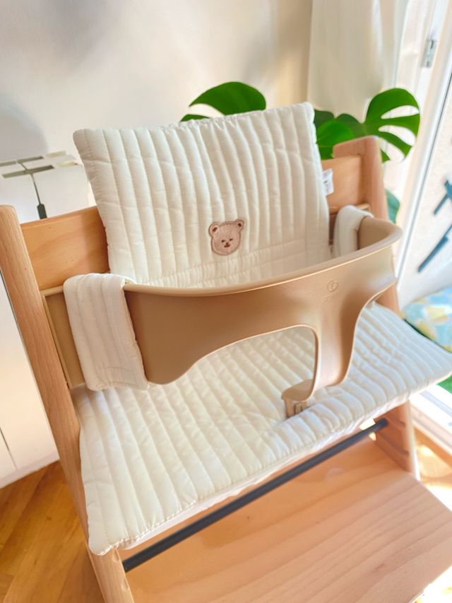 cojin para trona Stokke Tripp Trapp con un bonito oso. Añade un toque de color y comodidad a la silla.