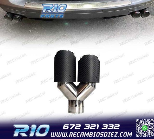 Detalles del productoMóvel: 672 321 332 - Referencia: ESC010404. COLA ESCAPE CARBONO DOBLE IZQUIERDA LOOK AKRAPOVIC Medidas: Diámetro de entrada interior 60 mm, exterior 63 mm Diámetro cada salida exerior 89 mm Largo de 250 mm Instalación sencilla, sujección mediante tornillo o punto de soldadura Carbono Look Akrapovic Lado izquierdo Imagen. Dale un toque más deportivo al vehículo con esta cola de escape.