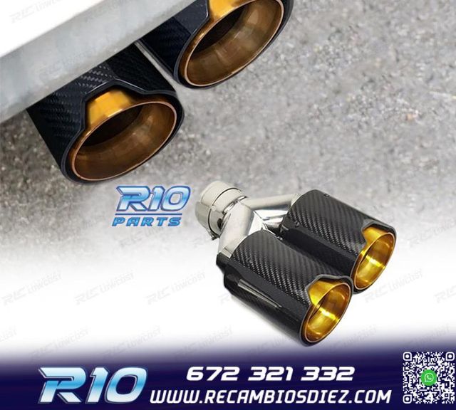 Detalles del productoMóvel: 672 321 332 - Referencia: ESC010120. COLA ESCAPE DCH BMW LOOK M PERFORMANCE DORADO CARBONO Especificaciones: Modelo: Look M Performance Lado de montaje: Derecho Tipo de salida: Doble Color: Dorado / Carbono Diámetro de entrada: Interior: 60 mm Exterior: 64 mm Diámetro cada salida exterior: 94 mm Largo: 250 mm Ancho total: 190 mm Montaje. Fácil instalación sin modificar nada en el vehículo. Estos no son productos originales de la marca BMW. El artículo ofrecido, solo es compatible para los modelos de vehículos descritos.