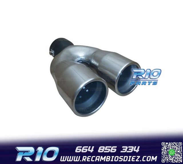 Detalles del productoMóvil: 664 856 334 - Referencia: ESC000316. COLA ESCAPE DOBLE REDONDA Especificaciones: Modelo: Doble redonda Material: Acero inoxidable Medida: 240 mm (largo) 170 mm (ancho) Diámetro de entrada: 60 mm Montaje. Instalación sencilla, sujección mediante tornillo o punto de soldadura Imagen. Dale un toque más deportivo al vehículo con esta cola de escape