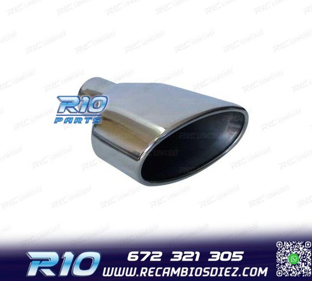 Detalles del productoMóvel: 672 321 305 - Referencia: ESC000251. COLA ESCAPE OVALADA ACERO INOX TIPO RS4 CUPRA 2 LADO IZQ Especificaciones: Modelo: Ovalada con corte diagonal Material: Acero inoxidable Lado izquierdo Medida: 200mm (largo), 150mm (ancho), 97(alto) Diámetro de entrada: 60mm Montaje. Instalación sencilla, sujección mediante punto de soldadura. Imagen. Dale un toque más deportivo al vehículo con esta cola de escape.