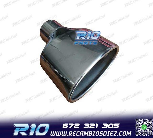 Detalles del productoMóvel: 672 321 305 - Referencia: ESC000435. COLA ESCAPE OVALADA ACERO INOX TIPO RS4 CUPRA 3 LADO DCH Especificaciones: Modelo: Ovalada con corte diagonal Material: Acero inoxidable Lado derecho Medida: 200 mm (largo), 150 mm (ancho), 97 mm (alto) Diámetro de entrada: 60 mm Montaje. Instalación sencilla, sujección mediante punto de soldadura. Imagen. Dale un toque más deportivo al vehículo con esta cola de escape.