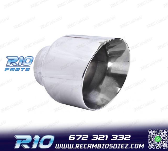 Detalles del productoMóvel: 672 321 332 - Referencia: ESC010118. COLA ESCAPE UNIVERSAL CORTA CROMADA Especificaciones: Acabado en acero, corte diagonal. Material: Acero INOX Lado: Derecho Medida: 125mm (largo), 100mm (ancho), 100 (alto) Diámetro de entrada: 63mm Montaje. Instalación sencilla, sujeción mediante tornillo o punto de soldadura. Imagen. Dale un toque más deportivo al vehículo con esta cola de escape.