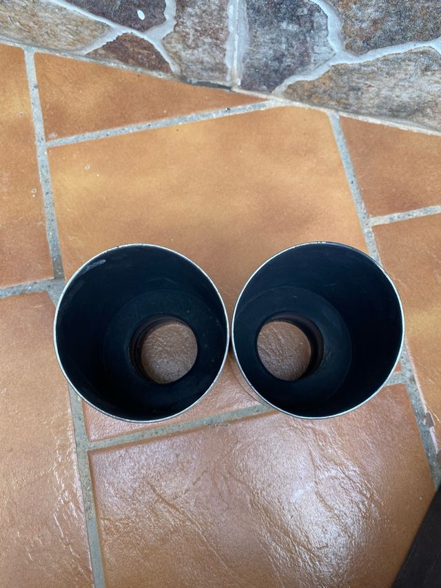 Detalles del productoPar de colas de escape fabricadas en acero inoxidable.