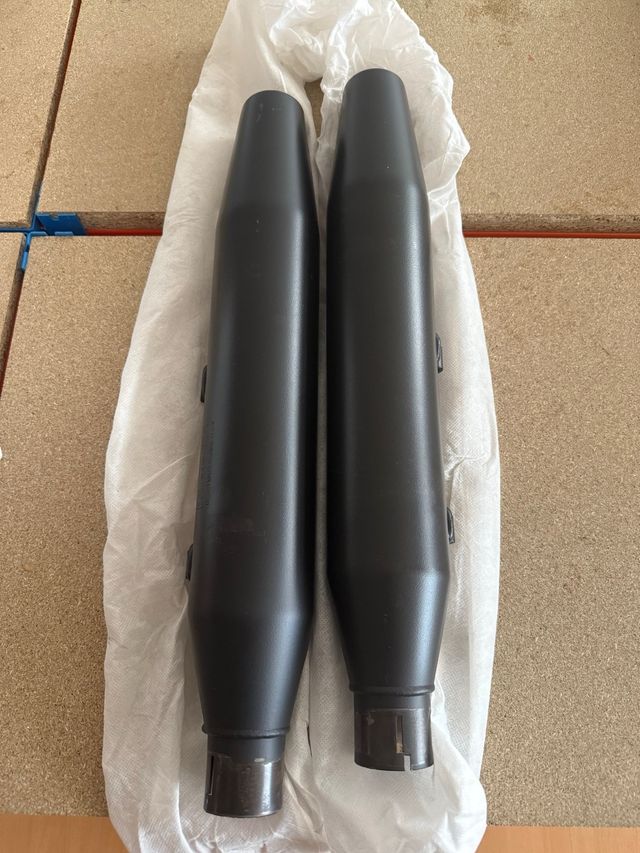 Detalles del productoPar de colas de escape cónicas negro mate para Harley Davidson Originales.