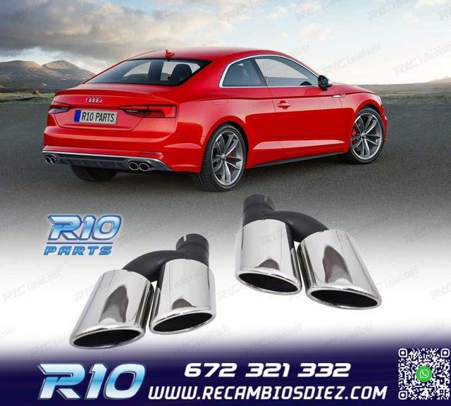 Detalles del productoMóvel: 672 321 332 - Referencia: ESC010205. COLAS ESCAPE AUDI LOOK S Válido para: Audi A3 8P y 8V (2004-2017) Con difusor trasero S-Line Audi A4 B7 y B8 (2007-2015) Con difusor trasero S-Line Audi A5 (2007-2016) Con difusor trasero S-Line Audi A6 4F y 4G (2004-2018) Con Difusor trasero S-Line Audi A7 (2010-2017) Con Difusor trasero S-Line Audi A8 D3 & D4 (2004-2017) Con Difusor trasero S-Line Especificaciones: Modelo: Look S Material: Acero inoxidable Medida: 215 mm (largo), 190 mm (ancho) Diámetro de entrada: 60 mm Tipo de salida: Doble a ambos lados (00-----00) Montaje. Instalació