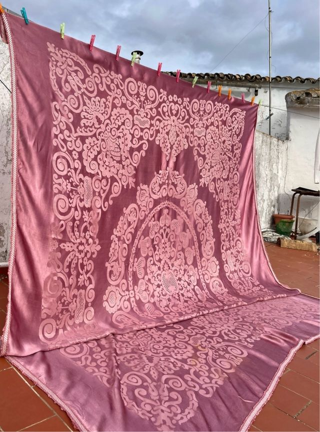 Tocado de virgen Juego de dalmática y casulla flequeria policromia cristo terciopelo encaje seda bordado de oro saya manto brocado militar peluca ajuar bordado talla orfebrería corona potencias rosario de plata oro fino fajín medalla condecoración pañuelo seda ganchillo croche sabana bordada mantel tallado reloj alpaca encaje de bolillos