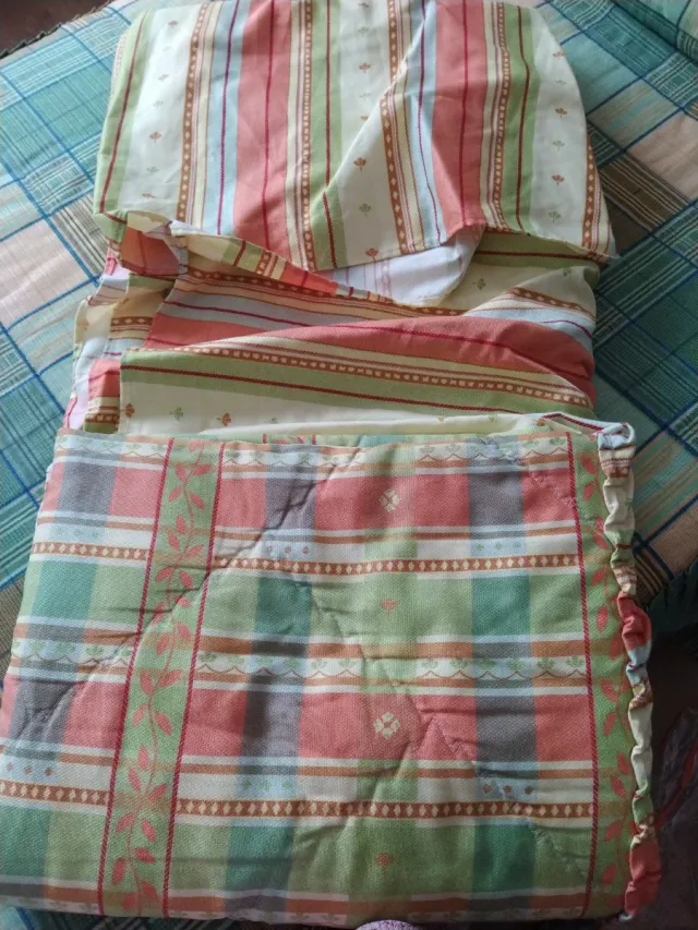 Detalles del productoColcha bouti infantil con un diseño alegre de rayas y cuadros.