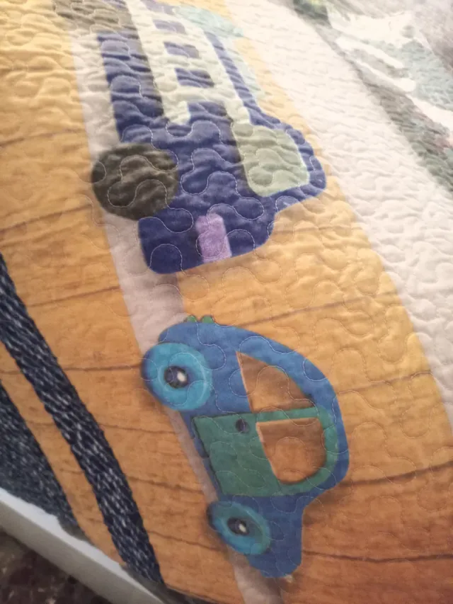 Colcha infantil con un divertido diseño de coches. - Estampado de coches de colores. - Tejido suave y acolchado. - Ideal para la habitación de los más pequeños.