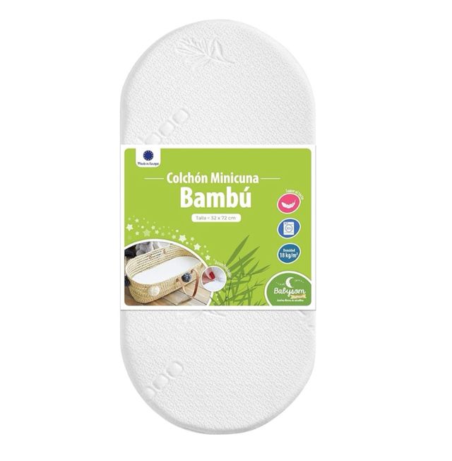 Colchón Capazo bebé - Funda de Bambú - 72 x 32 cm | Transpirable | Antiahogo | Altura 4 cm 15.12.11