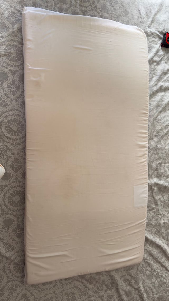 Vendo colchón para cuna de viaje, en buen estado. Es ligero y fácil de transportar. - Perfecto para viajes o como colchón extra. - Medidas: 117x57x4cm - Color blanco