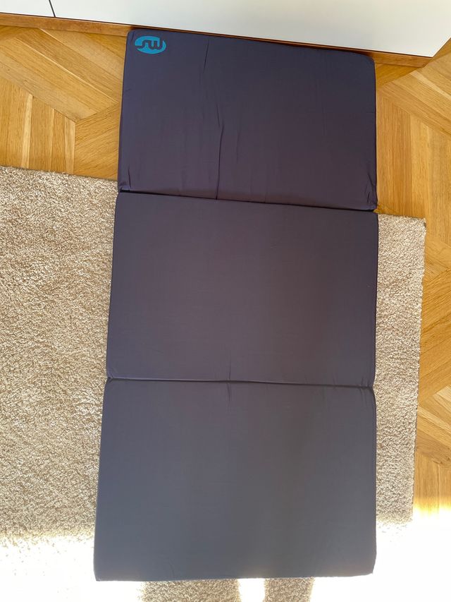 Colchón plegable para cuna de viaje. Es cómodo y fácil de transportar. - Color gris oscuro. - Diseño de tres secciones plegables.