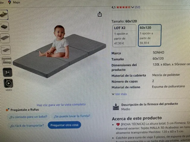 Detalles del productoColchón de viaje para cuna, plegable en 3 piezas. Ideal para transportar y asegurar el descanso del bebé.