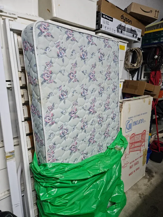 Colchón de muelles con estampado floral. - Tejido exterior con diseño de rosas. - Bordes reforzados. Tiene una mancha en el lateral