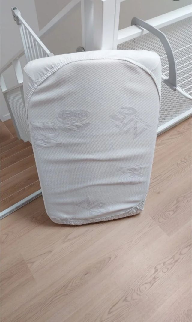 Colchón minicuna de 80x48cm. Viene con funda de cremallera y dos sábanas.