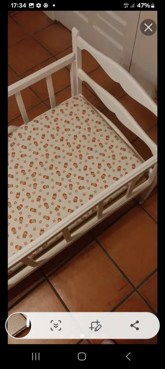 Colchón para cuna con un diseño infantil. Medidas 110×60 - Tejido con estampado de figuras. - Color blanco.